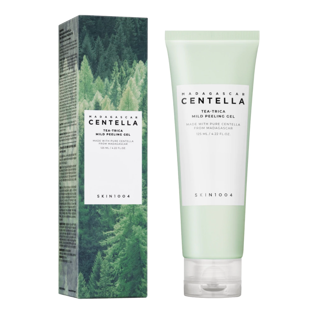 Revitalize sua pele com o Madagascar Centella Tea-Trica Mild Peeling Gel da Skin1004. Sua fórmula tipo gommage combina a ação física da celulose com ácidos e extratos botânicos para remover células mortas, cravos e excesso de sebo, ao mesmo tempo em que hidrata, acalma e fortalece a barreira cutânea.