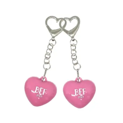 • Formato divertido: lip balms em formato de coração que funcionam como chaveiros