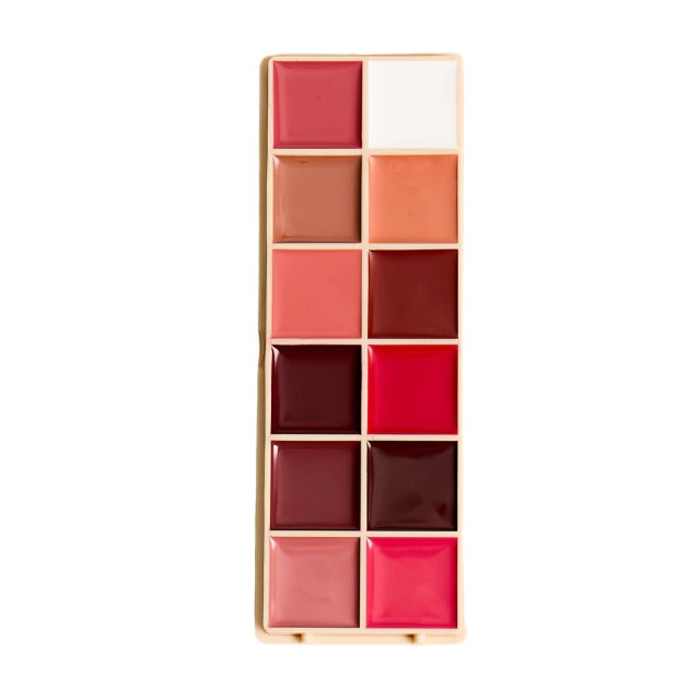 São 12 cores em uma única paleta, pensadas para substituir vários produtos e facilitar a rotina: do uso pessoal ao profissional. Textura cremosa, confortável e reaplicável, com alta pigmentação e excelente desempenho para um batom cremoso. Algumas cores apresentam acabamento semi-matte e outras acabamento semi-gloss.