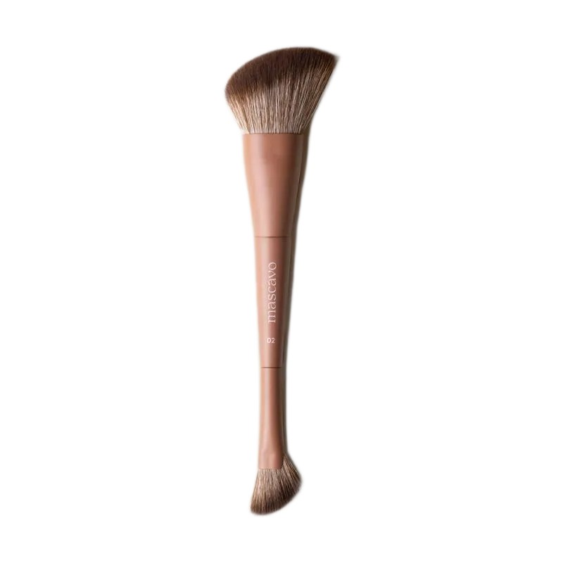 Modo de uso: utilize a extremidade maior para contornar e definir as áreas mais amplas do rosto como as maçãs, a linha do maxilar e a linha do cabelo. Utilize a outra extremidade para áreas menores do rosto, como o nariz. Pegue com o pincel uma pequena quantidade de produto, retire o excesso e aplique no rosto.